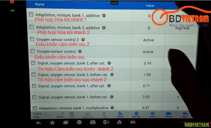 Bước 11:Chọn Oxygen –sensor control để xem dữ liệu động.