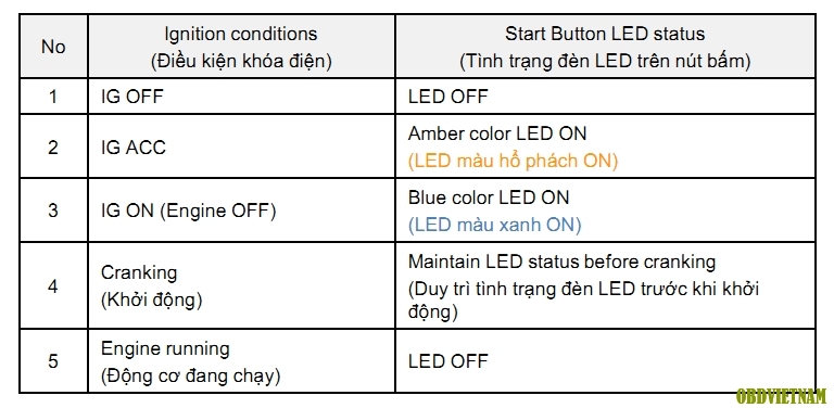 6. Điều khiển các đèn chỉ thị trên nút khởi động: Nothing , Amber, Blue LED